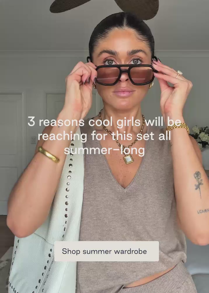 Model wearing black cropped leggings and brown tank Model wearing black cropped flares