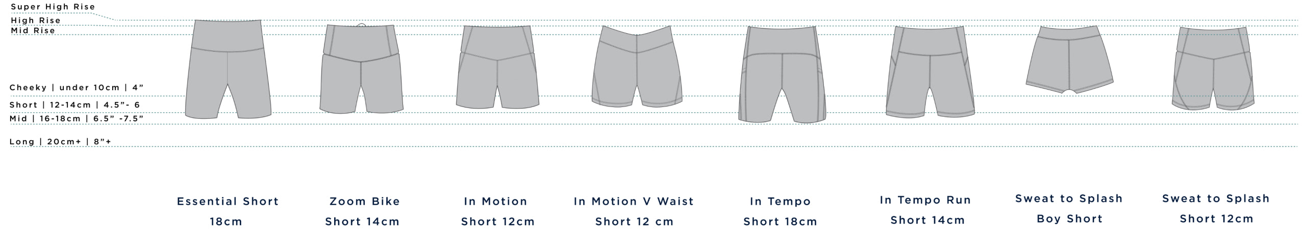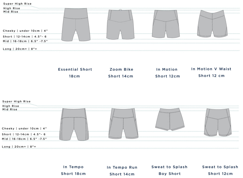 The In Tempo or Stash & Dash shorts are ideal for high intensity activities. They're both made from our signature CompressLuxe Eco fabric which is quick drying and moisture-wicking. The main difference between the two is the in-seam length, with In Tempo at 14cm and Stash & Dash at 18cm.