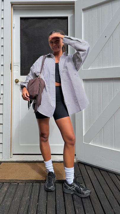 Larnie wears a size XS